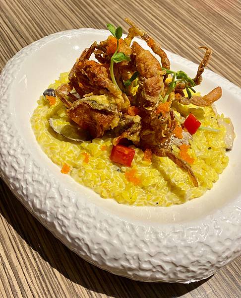 香酥軟殼蟹奶油明太子燉飯