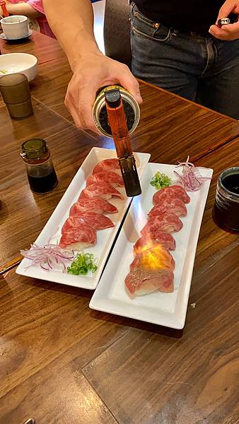 頂級和牛握壽司🐂-》大師現場火焰秀,濃濃炙燒味配上頂級和牛的油脂,厚厚厚...我都在沙灘上奔跑了🤤