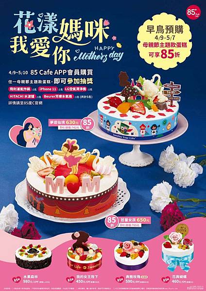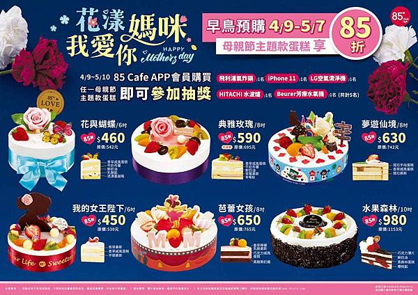 5/7前母親節主題蛋糕早鳥預購85折