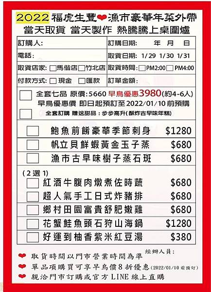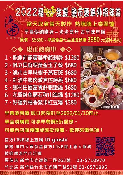 #年菜 #年菜預購 #年菜外帶 #年夜飯 #團圓飯 #除夕 #過年 #漁市自然慢食和風料理 #漁市大眾食堂 #2022年菜 #漁市豪華外帶年菜 #新竹年菜 #竹北年菜 #跟著飯店主廚團購美食